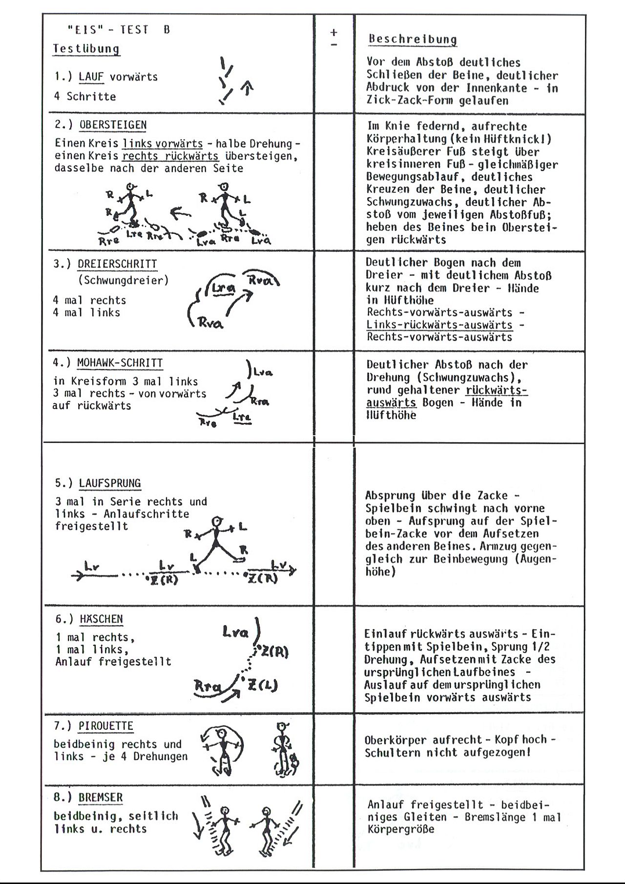 Anlauf freigestellt – Gerade oder in Kreisform – Kopf hoch – Spietlfuß u. Schultern nicht unter Hüfthöhe